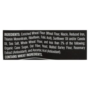 ingredients : enriched wheat flour;wheat flour;niacin;reduced iron;thiamin mononitrate;riboflavin;folic acid;sunflower oil and/or canola oil;sea salt;whole wheat flour;and less than 2% of the following: organic cane sugar;oat fiber;yeast;malted barley flour;rosemary extract;antioxidant;and ascorbic acid
