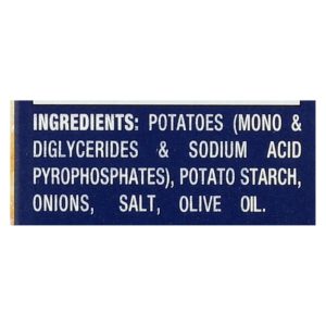 ingredients : potatoes;mono & diglycerides & sodium acid pyrophosphate;potato starch;onion;salt;olive oil