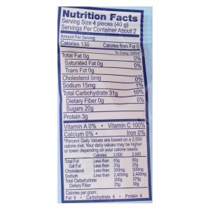 Surf sweets gummy worms are chewy, gluten-free snack treats. Ingredients include organic cane sugar, organic grape juice concentrate, organic sunflower oil and natural flavors and colors. You’ll gain about two servings from the 2.75 oz. Packet. This product is made in a nut-free facility and free of the 8 common allergens.