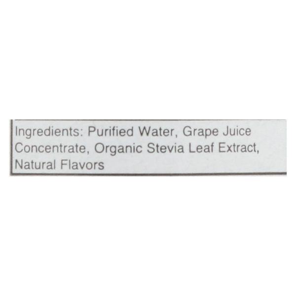 ingredients : purified water;grape juice concentrate;organic stevia leaf extract;natural flavors