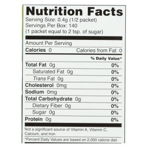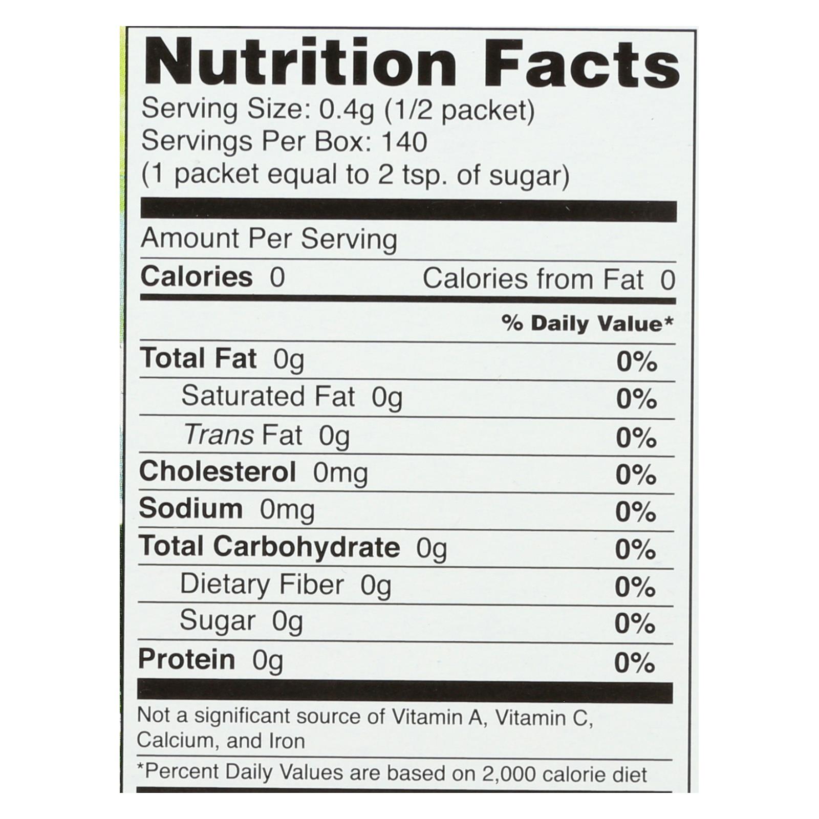 Sweetleaf organic stevia sweetener, 70 count box contains 70-packets of all-natural stevia-based sweeteners that are zero calories, gluten-free, non-gmo and offer a non-glycemic response. This product is made with certified organic sweet leaf stevia extract. Each packet is as sweet as two sugar packets, so start with half a packet and adjust for taste.