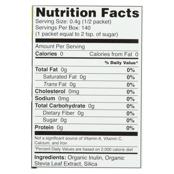 ingredients : organic inulin;organic stevia leaf extract;silica