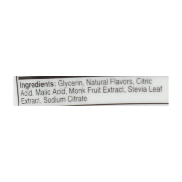 ingredients : vegetable glycerin;purified water;citric acid;malic acid;natural flavor;stevia leaf extract;sodium citrate