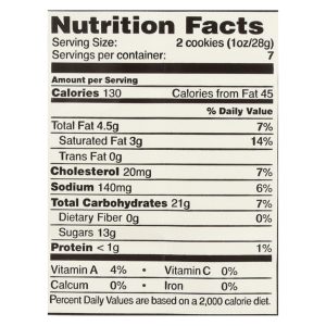 Tate’s bake shop gluten free ginger zinger cookies are thin, buttery and crisp cookies made from simple ingredients like crystalized ginger, rice flour, butter, cane sugar and eggs. Each 7 oz. Bagged container has 7 two craft-baked cookie servings. Each serving is 130 calories and 0 g. Of trans fat. See nutrition facts panel for allergens.