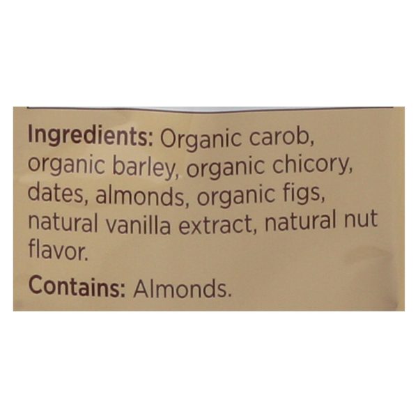 ingredients : organic carob;organic barley;organic chicory;dates;almonds;organic figs;natural vanilla extract;natural nut flavor