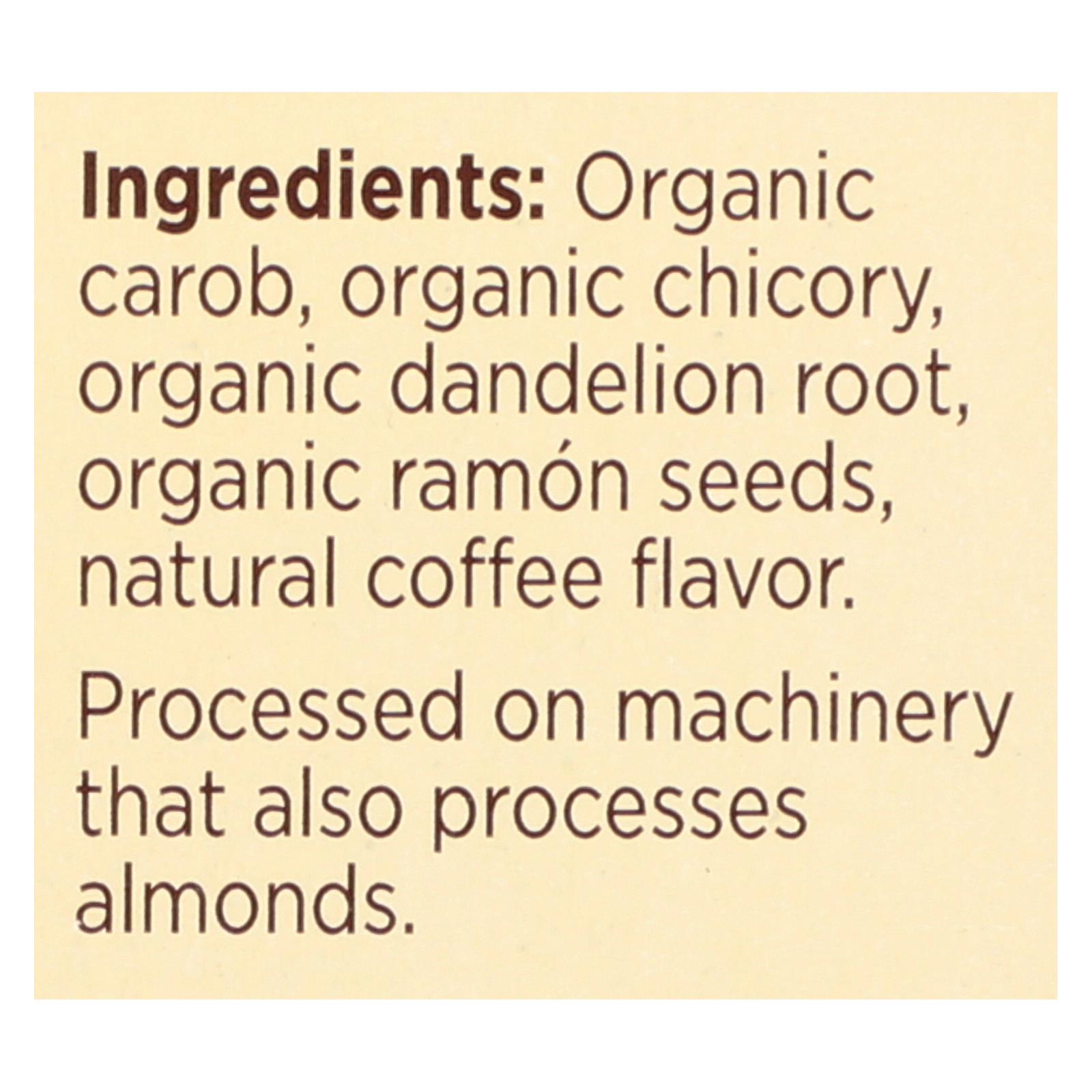 ingredients : organic carob;organic chicory;organic dandelion root;organic ramon seeds;organic coffee flavor