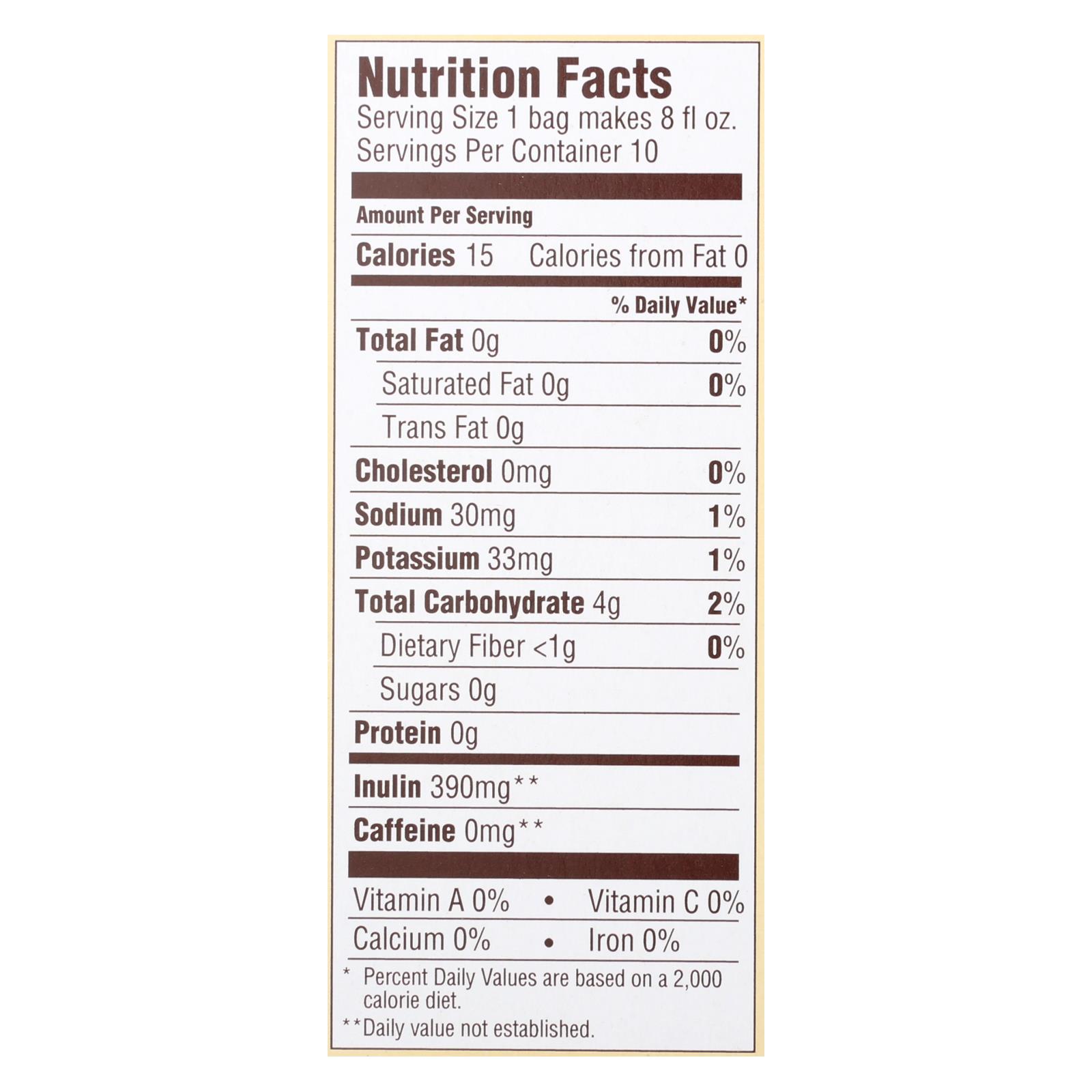 Teeccino chicory dandelion herbal tea is certified qai organic, kosher-parve and certified gluten-free. Teeccino chicory dandelion herbal tea features carob, chicory, dandelion root, ramón seeds and natural coffee flavor. Every 10-count box contains naturally caffeine-free tea. See nutrition facts panel for allergens.