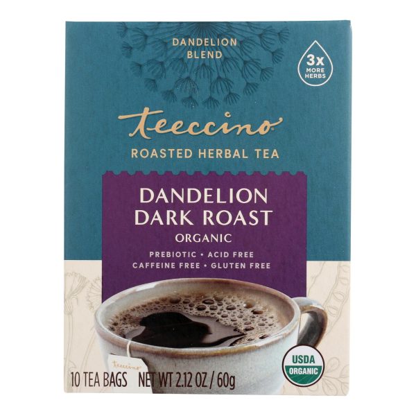 Teeccino Organic Herbal Coffee – Dandelion Dark Roast – 10 Bags – Case Of 6