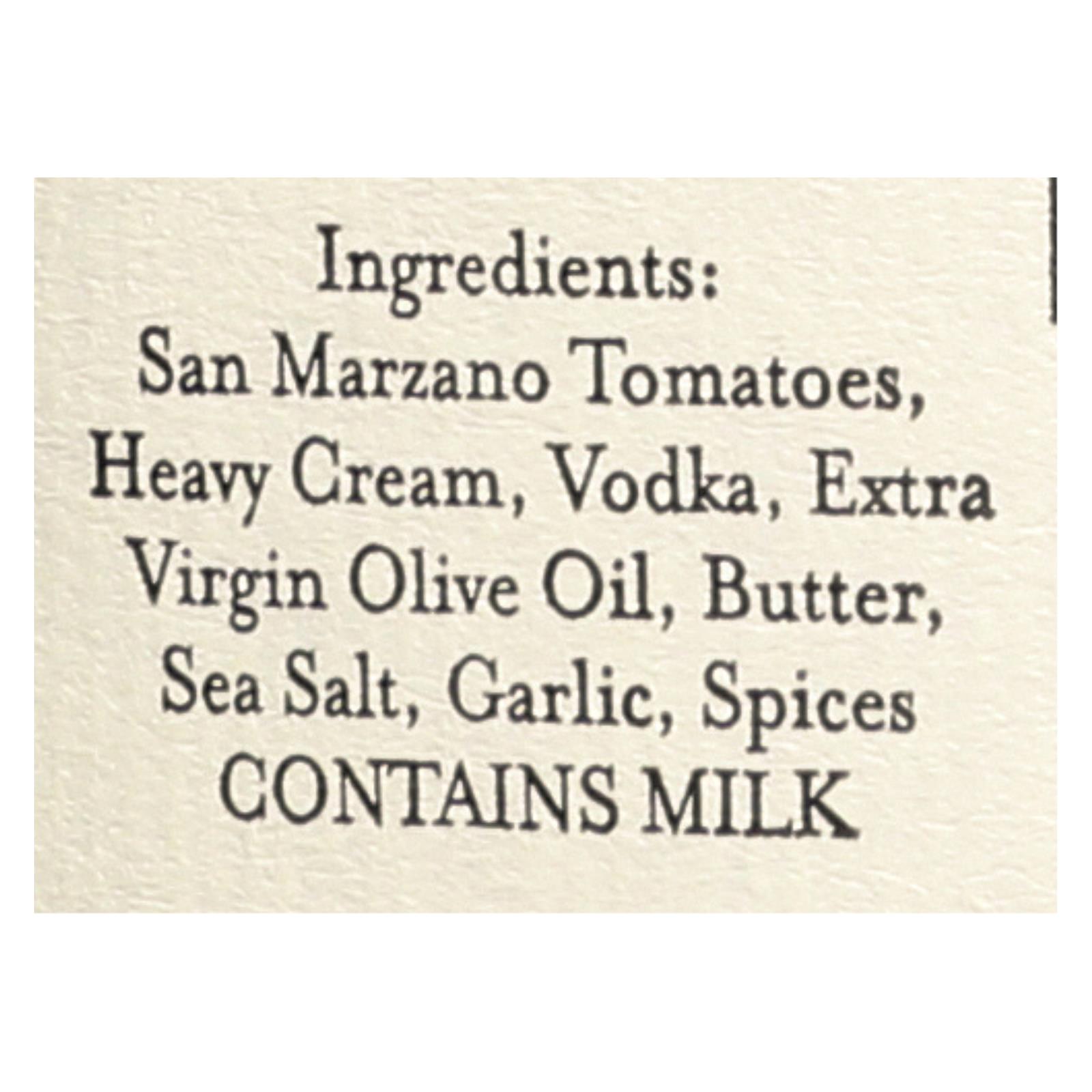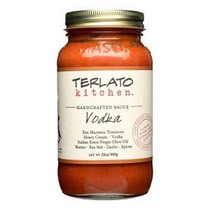 Terlato kitchen handcrafted vodka sauce pairs perfectly with your italian dishes and pastas. This 24 oz. Jar of vodka sauce features a rich blend of heavy cream, vodka, san marzano tomatoes, garlic and spices to dress up your gourmet meals. Add this spicy, rich sauce to your soups for a flavorful explosion.