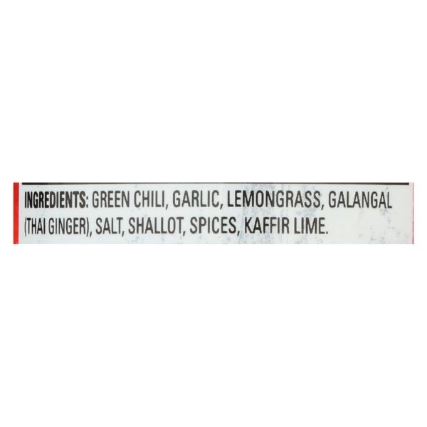 Thai kitchen green curry paste is made from green chili, garlic, lemongrass, galangal (thai ginger), salt, shallot, spices and kaffir lime. Each 1 tbsp. Serving in the 4 oz. Jar contains 15 calories, 2 g. Of sugar, 0 g. Of fat, 3 g. Of carbohydrates and 1 g. Of dietary fiber. Our green curry paste is gluten-free and vegan.