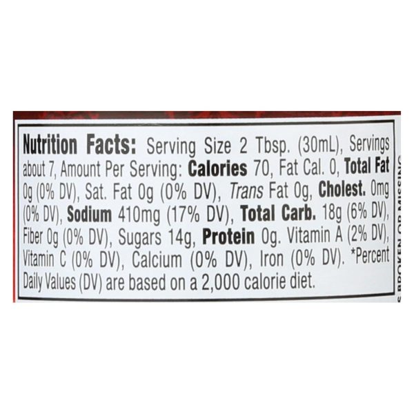 Thai kitchen sweet red chili dipping & all-purpose sauce is made from pure cane sugar, pickled red chili pepper, garlic, rice vinegar and salt. Each 2 tbsp. Serving in the 6.57 fl. Oz. Bottle contains 70 calories, 14 g. Of sugar, 0 g. Of protein and 410 mg. Of sodium. Our sweet chili sauce is gluten-free and vegan and contains no artificial colors or flavors.