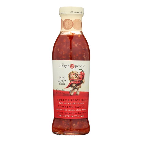 The ginger people ginger chili sauce is a great sweet and spicy dip for dunking spring rolls and similar savory treats. A drizzle of this sauce enlivens fish and crab cakes with added sizzle. It’s also a good glaze for meats. This product is full of the life and good health of ginger, which adds character with a natural sweet heat while chili adds a little fire and sweet red peppers add balance. This sauce comes in a 12.7 fl. Oz. Bottle.