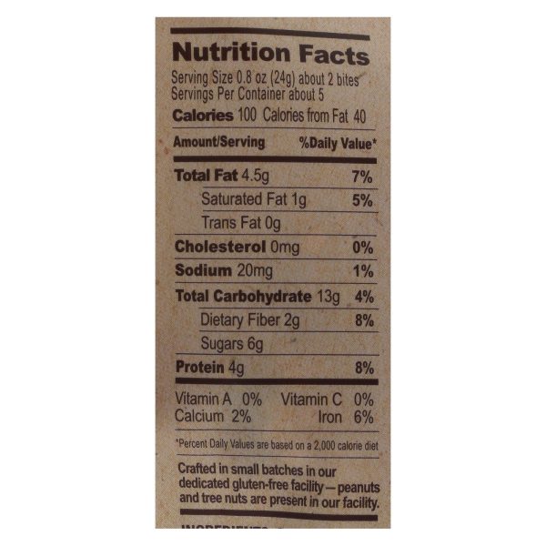 Gfb nutrition bites are a great source of protein and fiber, along with being vegan, and non- gmo. Our most requested flavor comes to you with tart montmorency cherries and dark chocolate enrobed in toasted california almonds. Flecked with crisped brown rice, the amazing texture brings out all the yummy notes in each bite-sized morsel. Gfb is a certified b corporation. Includes one 4 oz bag. Peanuts and treenuts are present in the facility. See nutrition fact panel for allergens. We own and operate our own sustainable, certified gluten-free facility in grand rapids, michigan. This means we’re able to pay closer attention to quality than an outsourced manufacturing process allows, which includes our commitment to small-batch production and meticulous care for everything with our name on it.