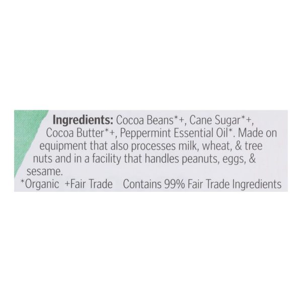 Usda organic. Certified organic by qai. Soy free. Suitable for vegans. Organic is always non gmo. New recipe! a classic combination that’s never tasted so good. We’ve infused our dark chocolate with peppermint for a refreshing spin on a favorite flavor pairing. Theochocolate.com. Learn more at theochocolate.com. Fair trade. Fair for life fair trade certified. Contains 99% fair trade ingredients.