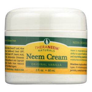 Theraneem naturals original vanilla neem cream is made from neem, which contains high levels of antioxidants and essential fatty acids to nourish, moisturize and calm even the most sensitive skin. Ideal for all skin types, our neem cream comes in a 2 fl. Oz. Container and is free of gluten, sulfates and parabens.