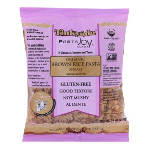 Tinkyada brown rice organic spirals pasta is 100% organic, wheat free, gluten-free and made in a dedicated wheat free production facility to prevent cross-contamination. One 12 oz. Package of tinkyada is cholesterol free, certified kosher by the kashruth council of toronto and consistently al dente as with traditional pastas, never mushy.