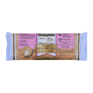 Tinkyada pasta joy ready spaghetti style organic brown rice pasta gives you a firm-to-the-bite pasta product for side dishes and main courses. Cholesterol-free, this 12 oz. Package of brown rice pasta makes a great meal if you’re watching your cholesterol count. Because it is produced on machines dedicated to making only rice pasta, there is no risk of cross-grain contamination of this wheat-free food. Take this delicious pasta from package to plate in less than 20 minutes.