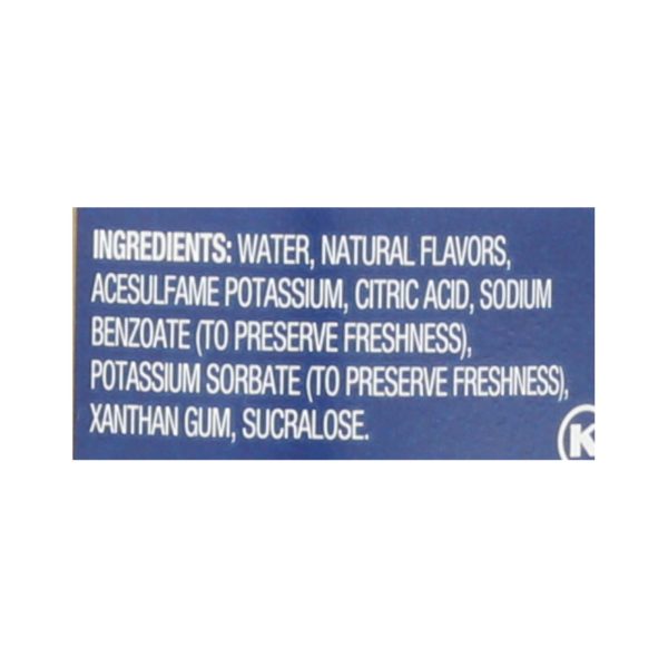 ingredients : water;natural flavors;acesulfame potassium;citric acid;potassium sorbate (to preserve freshness);sodium benzoate (to preserve freshness);xanthan gum;sucralose
