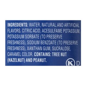 ingredients : water;natural and artificial flavors;citric acid;acesulfame potassium;potassium sorbate (to preserve freshness);sodium benzoate (to preserve freshness);xanthan gum;sucralose;caramel color