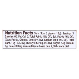 Torie & howard pink grapefruit & tupelo honey hard candy is made with natural ingredients. Each 2 oz. Tin contains pink grapefruit & tupelo honey flavored hard candies with only 60 calories per 5 piece serving. Our candies are made with natural fruit flavors and no corn syrup, artificial dyes or casein. See nutrition panel for allergen information.