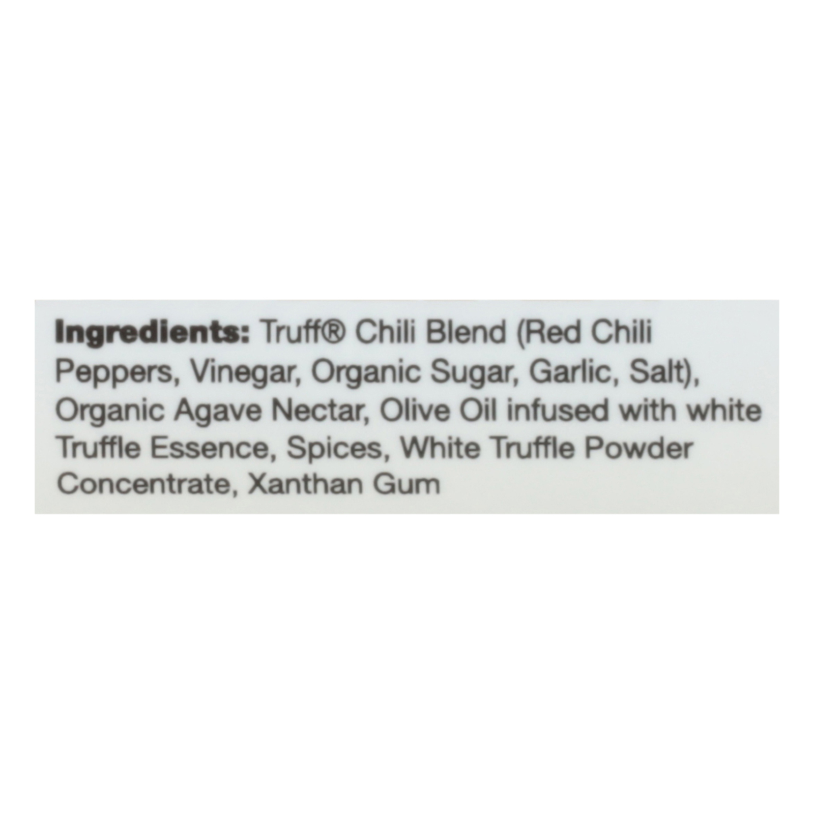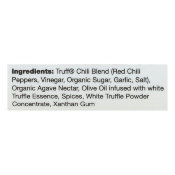 Our sauce: made with the finest red chili peppers and infused with white truffle oil. No preservatives. Food safe.