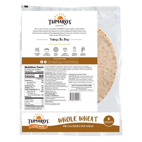 Tumaro’s 8-inch Whole Wheat Carb Wise Wraps – Case Of 6 – 8 Ct