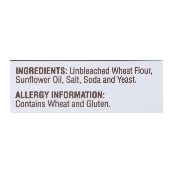 ingredients : unbleached wheat flour;sunflower oil;salt;soda and yeast