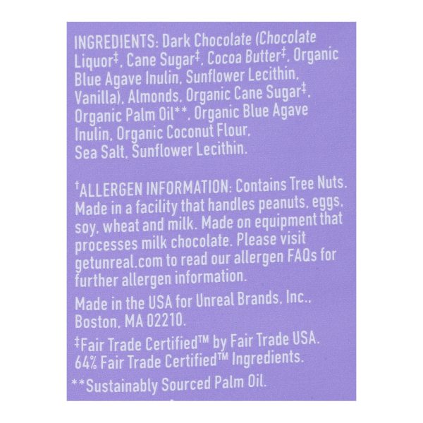 When you really want to indulge, choose unreal’s decadent dark chocolate almond butter cups. Rich, chocolatey goodness combines with creamy almond butter for a melt-in-your-mouth treat that can satisfy even the most nagging sweet tooth. But, unlike other options, these candies are dairy-free, gluten-free, soy-free, and vegan. Unreal is on a mission to change the way candy is made—the company’s founders create treats free of artificial flavors, dyes, and preservatives, and made only with certified fair trade and non-gmo ingredients. Not only do our products taste better, but they’re also healthier. Includes one 3.2 oz. Bag of dark chocolate almond butter cups. See nutrition fact panel for allergens. Of course snacks should be fun, but what about changing the world? we think that that should be fun too. The only thing we’re more serious about than fun? the taste.