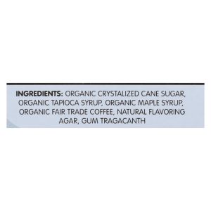 ingredients : organic crystalized cane sugar;organic tapioca syrup;organic maple syrup;organic fair trade coffee;natural flavoring agar;gum tragacanth