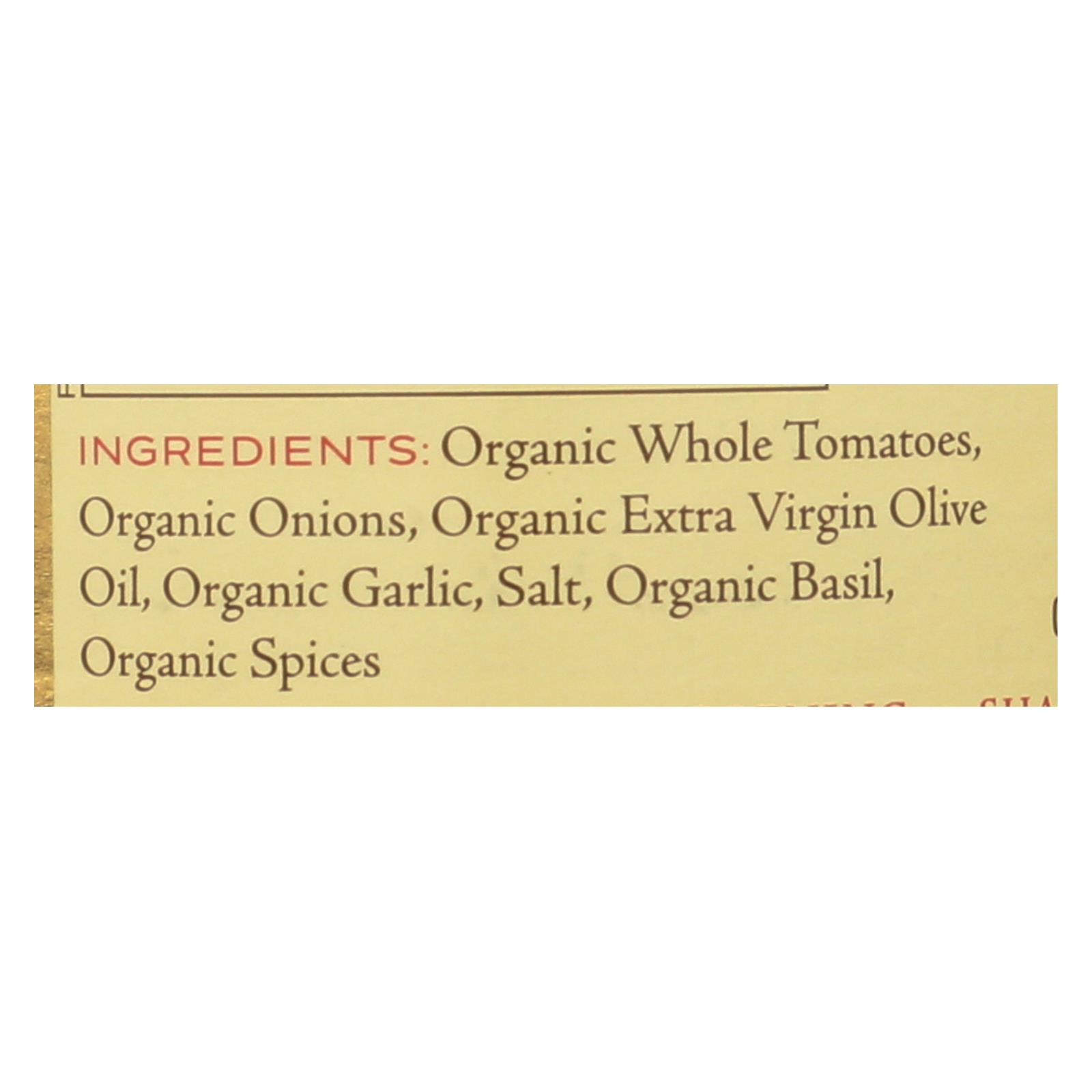 ingredients : organic whole tomatoes;organic onions;organic extra virgin olive oil;organic garlic;salt;organic basil;organic spices