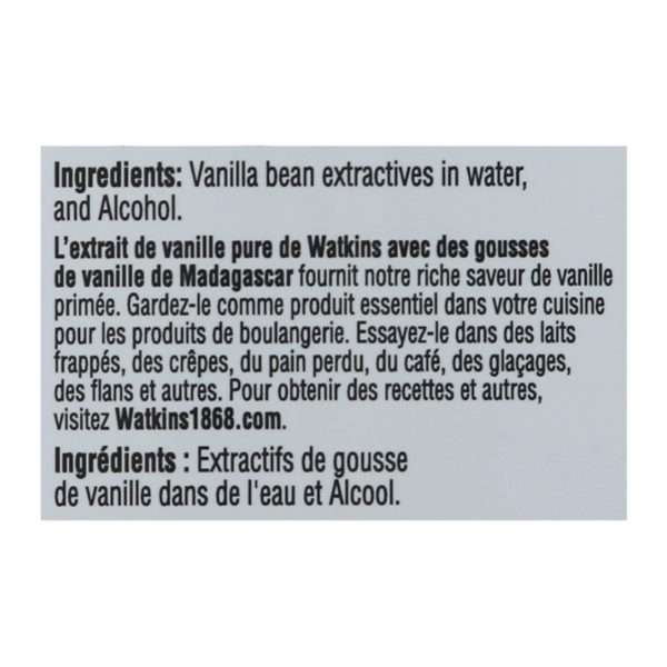 With madagascar vanilla beans. No artificial flavors. Gluten free. No corn syrup. Non-gmo. Since 1868. Taste the tradition. Since 1868, we’ve earned our reputation as the best. From homemade to gourmet, and generation to generation. Watkits makes every recipe taste better. Watkits pure vanilla extract with madagascar beans delivers our rich, award-winning vanilla flavor. Keep as a staple in your kitchen for baked goods. Superior quality since 1868. All natural. For recipes and more, go to warkins1868.com. Awarded gold medal for highest quality. Try it in milk shakes, pancakes, french toast, coffee, frostings, custards and more. Please recycle. Made in u.s.a.