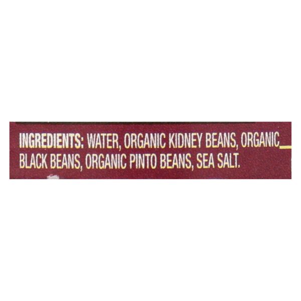 ingredients : water;organic kidney beans;organic black beans;organic pinto beans;sea salt
