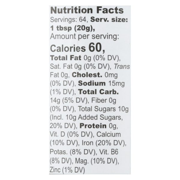 Wholesome! blackstrap molasses is made from certified non-gmo natural ingredients. This molasses is a certified fair trade product of paraguay. We make our organic blackstrap molasses using evaporated pure organic cane sugar. Wholesome! molasses is naturally gluten-free and vegan. This bottle holds 32 fl. Oz. Of molasses.