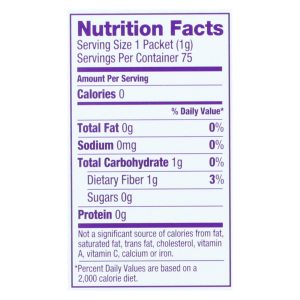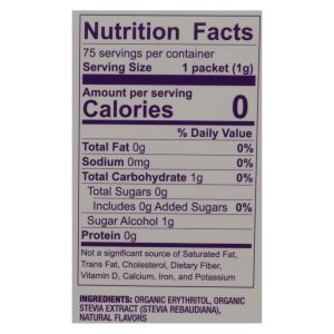 Wholesome! organic stevia zero calorie sweetener blend is made from certified non-gmo ingredients. This sweetener is low on the glycemic index and free of artificial ingredients. One teaspoon of organic stevia is equal to 2 teaspoons of regular sugar. Our zero calorie sweetener is naturally gluten-free and vegan. This box holds 75 individual packets of organic stevia zero calorie sweetener.