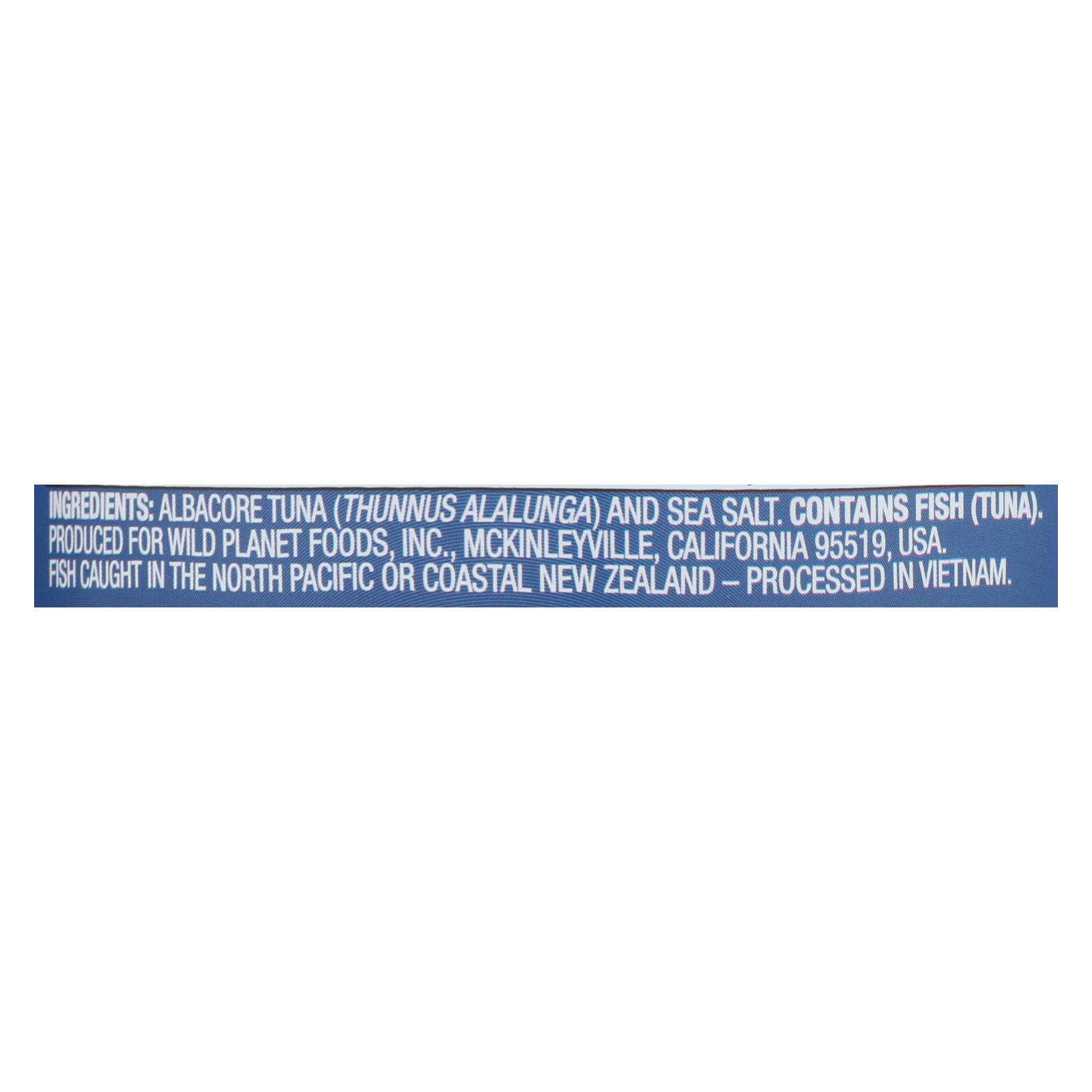 Wild planet wild albacore tuna is 100% pole and line caught fresh from the ocean. It comes in one 5 oz. Can. These tuna steaks are packed in extra virgin olive oil and are both dolphin- and turtle-safe. Research shows that smaller albacore, such as used by wild planet, contains less mercury than larger albacore. See nutrition facts panel for allergens.