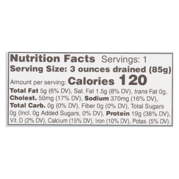 Wild planet wild white anchovies in water with sea salt are delicious any time. Sustainably caught, these delicate anchovies are packed fresh and are not brined for a delectable taste that’s mild yet flavorful. Each serving of these anchovies in this 4.4 oz. Container has 120 calories, 19 g. Of protein, 15% of the daily value of calcium and no trans fat or sugars.