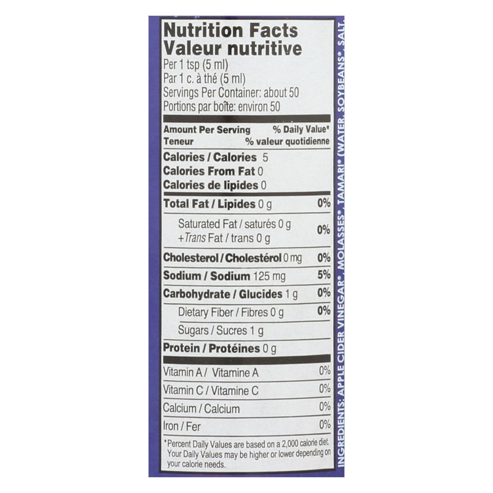 ingredients : apple cider vinegar;water;molasses;tamari* (water, soybeans*, salt, alcohol*, koji);cane sugar;salt;tamarind;ginger;lemon juice concentrate;garlic powder;onion powder;xanthan gum;shiitake mushroom powder;allspice;red pepper;orange extract;clove;natural smoke flavor;lemon extract