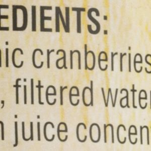 ingredients : organic cranberries;organic sugar;filtered water;organic lemon juice concentrate
