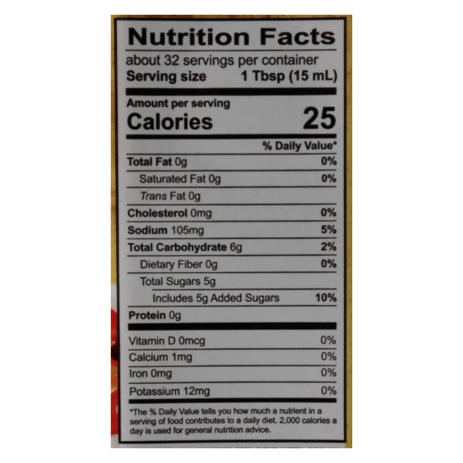 ingredients : high fructose corn syrup;water;distilled vinegar;tomato paste;soy sauce;wheat;soybeans;salt;sodium benzoate;modified food starch;sea salt;canola oil;xanthan gum;potassium sorbate and sodium benzoate;preservatives;dried garlic;dried onion;citric acid;extractives of paprika;natural flavors;with soy lecithin;spice
