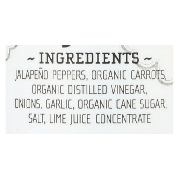 ingredients : jalapeño peppers;organic carrots;organic distilled vinegar;onions;garlic;organic cane sugar;salt;lime juice concentrate