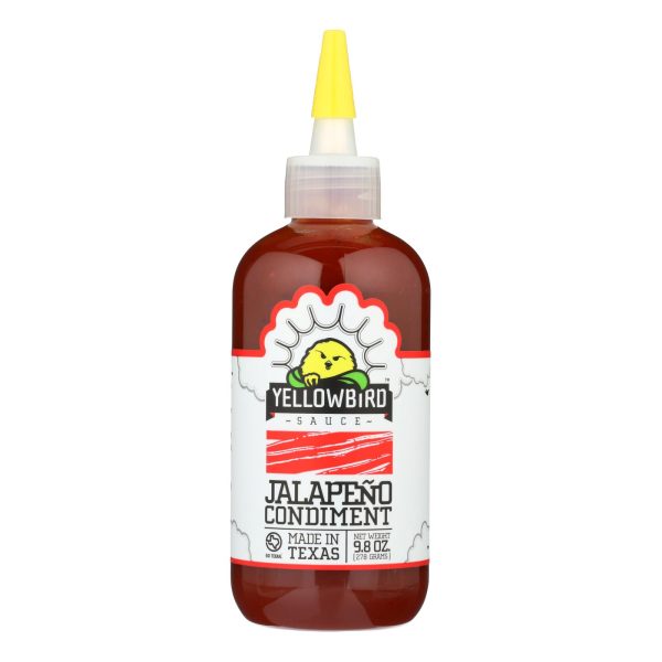 Yellowbird’s jalapeno condiment sauce is made in austin, texas from a blend of spicy jalapeno peppers, carrots, onions, vinegar, lime juice and spices. This low-sodium, vegan sauce adds flavor to any dish. Non-gmo and allergen-free, yellowbird condiment sauce is named after the yellowbird which is immune to the heat from spicy peppers like the jalapeno.