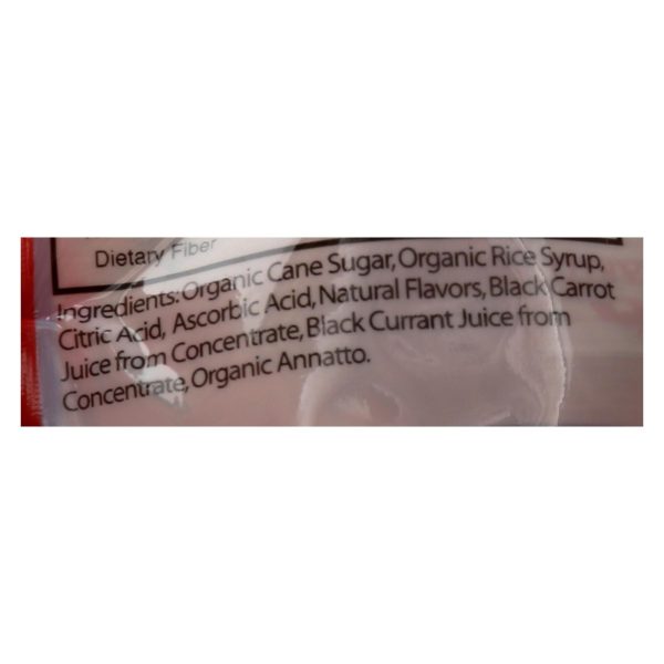 ingredients : organic cane sugar;organic rice syrup;citric acid;ascorbic acid;natural flavors;black carrot juice from concentrate;black currant juice from concentrate;organic annatto