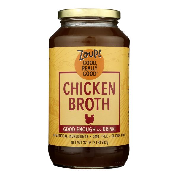Zoup! fresh soup company chicken broth is a great base for your favorite soup recipes. A simple, natural recipe, this broth contains only water, chicken broth, sea salt, yeast extract and natural flavors. At just 4 calories per 1/2 cup serving, you can add a little broth to any dish or side without loading it with calories. This jar holds 31 fl. Oz. Of chicken broth.